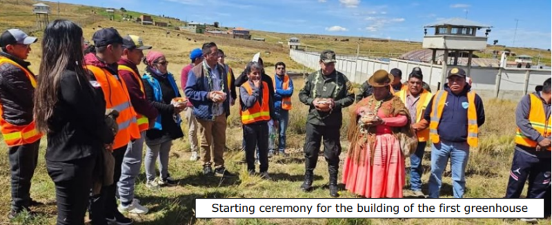 While in Chonchocoro, we witnessed the grand opening of two new greenhouses where prisoners could grow food. These greenhouses were constructed entirely from naturally occurring materials, primarily clay and dirt from the surrounding area. The funds for this project were provided by Quaker Bolivia Link (QBL), with support from the German Quaker charity Quaker Hilfe and the prison governor. This was one of QBL’s final acts, as its Trustees recently decided to lay down the charity.
